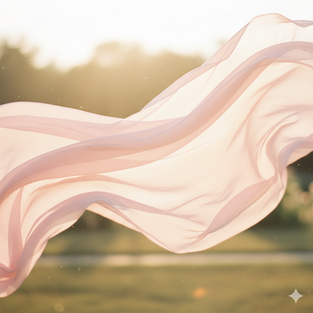 Chiffon is a lightweight, plain-woven fabric with a mesh-like weave that gives it a transparent appearance. It is incredibly fluid and slippery, creating a dreamy, romantic look.